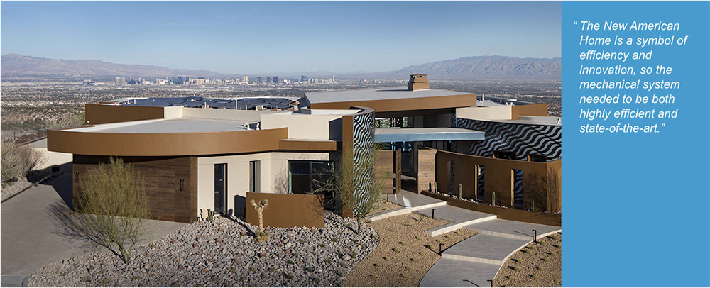 This modern home planted in the middle of broad desert sunshine and heat is a 6,428-square-foot high-performance home overlooking the Las Vegas Strip. Its 10 comfort zones are efficiently heated and cooled by Mitsubishi Electric Zoned Comfort Solutions®. The Mitsubishi Electric units offer whisper-quiet sound levels, simplified maintenance and tasteful design appeal, perfectly complementing the home’s luxurious aesthetics.